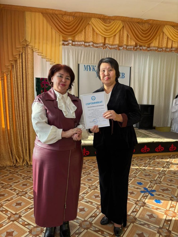 Семинарға аудандық білім бөлімінің басшысы Адиханов Марат Абдикаримович, аудандық әдістемелік кабинетінің меңгерушісі Алия Танатовна және әдіскер Макаева Эльмира Талиповна қатысып, семинар жұмысын қорытындылап, сабақ берген педагогтерге сертификат табыс етті және оқу-тәрбие процесін дамыту бойынша нақты ұсыныстар берді.